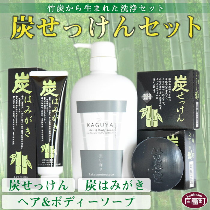 【ふるさと納税】<炭せっけんセット(炭せっけん×2 炭はみがき×1 ヘア&ボディソープ×1)>※入金確認後、翌月末迄に順次出荷します。 竹炭 天然成分 シャンプー チャコール 国産 有限会社竹炭の里 宮崎県 国富町 0022_ta【常温】