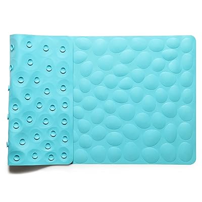 お風呂 すべり止めマット 浴槽 40×80cm ストーン柄 天然ゴム製 お風呂マット 介護 転倒防止 吸盤付き 柔らかい (ブルー)