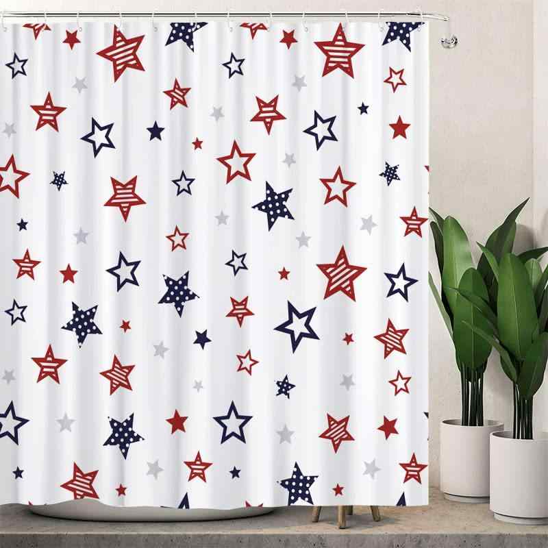 シャワーカーテン バスルーム 浴室 浴槽用 防水 撥水 防カビ ポリエステル製 スター柄 ブルー レッド おしゃれ モダン シンプル 目隠し 間仕切り