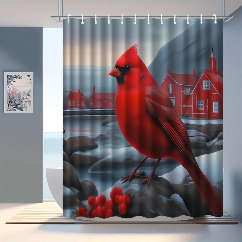 シャワーカーテン 防水 防カビ デジタルプリント 赤い鳥柄 間仕切り 目隠し ポリエステル製 お風呂 バスルーム 洗面所 かわいい おしゃれ セット