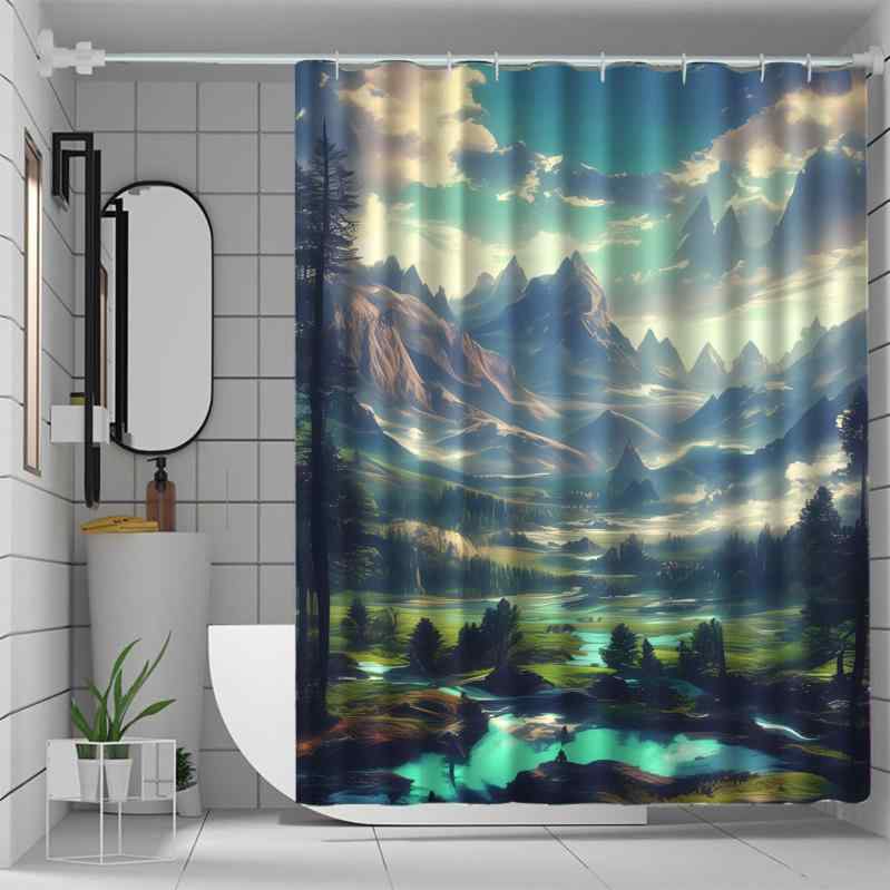 シャワーカーテン 防水 撥水 3Dデジタルプリント ポリエステル製 バスルームカーテン おしゃれ モダン シンプル 浴室用 間仕切り 目隠し 取付簡単 洗濯可能 防カビ