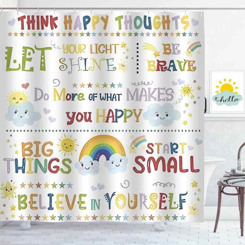 シャワーカーテン キッズ ガールズ 励まし名言プリント かわいい 防水 防カビ ポリエステル 浴室 バスルーム 洗面所 目隠し 間仕切り フック付き