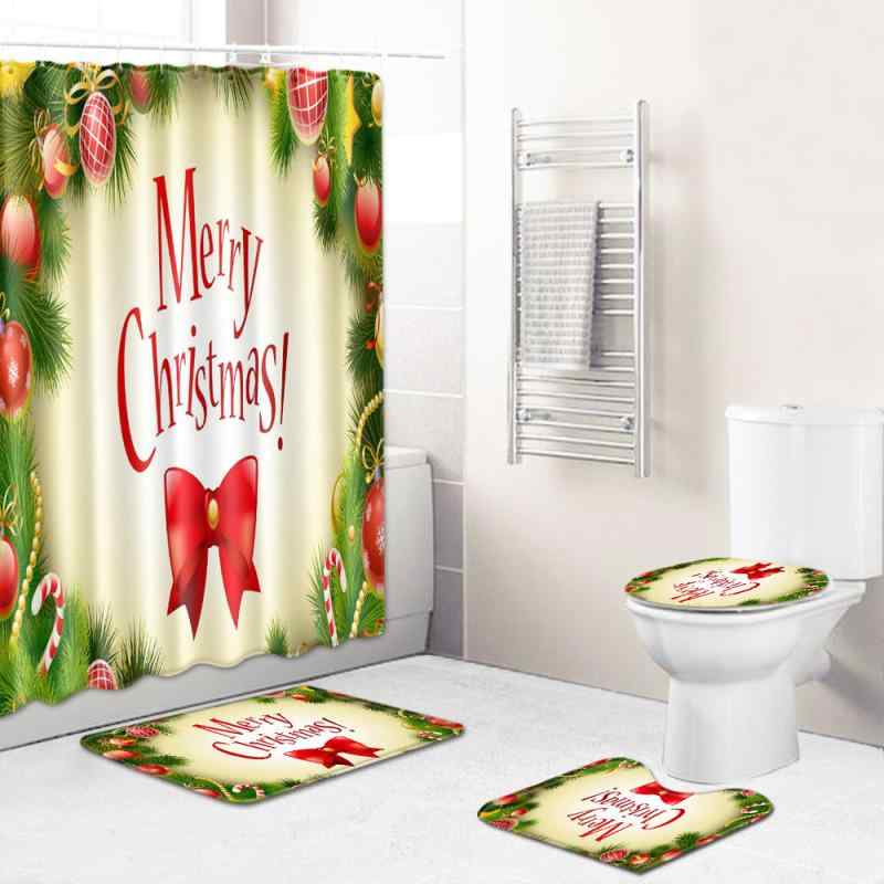 バスルーム クリスマス シャワーカーテン 4点セット バスマット トイレマット U字型マット 洗える 滑り止め ポリエステル素材 おしゃれ