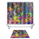 バスルームセット 抽象リーフ柄 防水 防カビ シャワーカーテン トイレマット U字型マット フタカバー 滑り止め ポリエステル 洗える おしゃれ モダン インテリア 4点セット 新生活