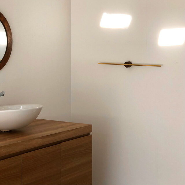 マットなゴールドのバーとウッド柄の支柱をアクセントにしたタオルハンガーです。 直線の長細いバーが特徴で、シンプルでミニマムな空間を演出します。 バーをスライドして左右のバランスを変更し、タオルの枚数や掛けるタオルのサイズに合わせてご利用できます。 また、ウォールハンガーとして壁面収納に取り入れるのもおすすめです。 ※壁に穴を開けて取り付ける為、電動ドリルなどをご用意ください。取り付ける壁などによって異なることから耐荷重の測定はしておりません。取り付けには十分ご注意頂き、設置可能な場所、強度をご確認ください。 ■素材 アルミニウム合金 ■サイズ 幅約40cm×奥行約5cm 幅約60cm×奥行約5cm ※他のアイテム含め、荷物のサイズが変わる数量をお買い上げの場合に限り、送料変更がありますので別途ご連絡致します。