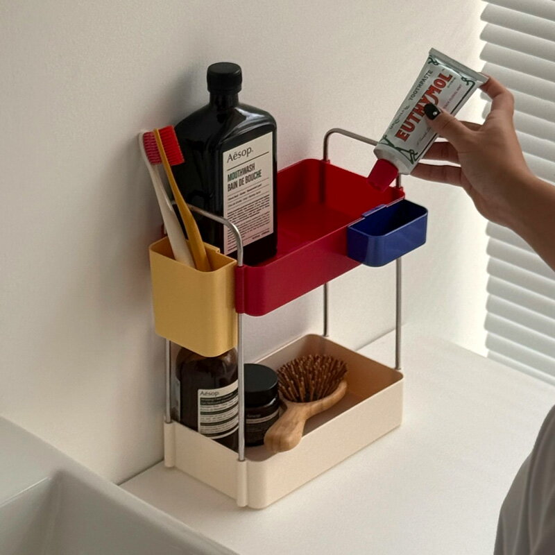 鮮やかなカラーが目を惹く収納ラックです。 サイドに付いたポケットは取り外しが可能で、お好きな位置に変えて使用することができます。 水や汚れを弾きやすい素材でお手入れがしやすく、衛生的に使用できます。 ※こちらは簡単な組み立て式です。 ■素材 トレー、ポケット:ABS樹脂 支柱:ステンレス ■サイズ 幅約24.3cm×奥行約15cm×高さ約26.5cm×棚間隔約13.8cm ■重量 約0.3kg ※他のアイテム含め、荷物のサイズが変わる数量をお買い上げの場合に限り、送料変更がありますので別途ご連絡致します。