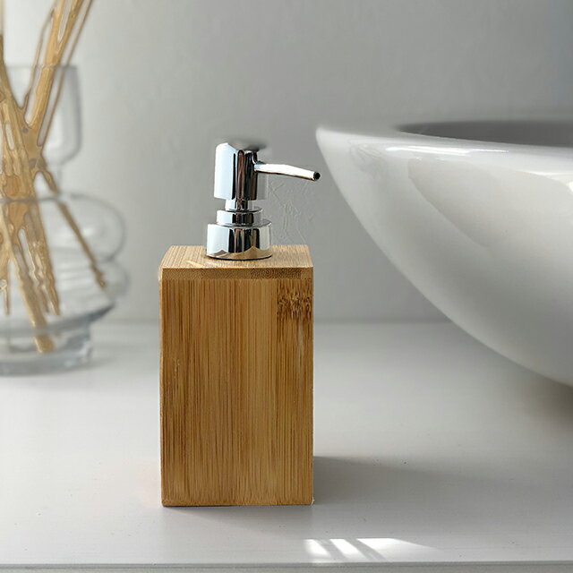 バンブーのソープディスペンサー。外側がウッド、内側にポリプロピレン素材を使用したアイテムです。 市販のソープなどを詰め替えてご使用ください。ストレートタイプになります。(※泡タイプではありません) ■素材 バンブー ポリプロピレン ■サイズ 直径約7cm×ボトル高さ約17cm 容量:400ml ※他のアイテム含め、荷物のサイズが変わる数量をお買い上げの場合に限り、送料変更がありますので別途ご連絡致します。