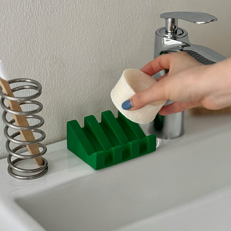 水はけがよく、石鹸が滑りにくいシリコン製ソープディッシュです。 鮮やかなカラーと深い凹凸のデザインが印象的で、石鹸やシャンプーバーなどデイリーなアイテムの生活感を抑えながら、インテリアの一部としてお楽しみいただけます。 水が溜まらないため石鹸が溶けにくく、清潔に保ちます。また、シリコン素材のため石鹸が滑り落ちる心配もありません。 シリコン素材の為サビの心配もなく、簡単に水洗いできるためお手入れも簡単です。 ■素材 シリコン ■サイズ 幅約9.5cm×奥行き約7cm×高さ約4cm ※他のアイテム含め、荷物のサイズが変わる数量をお買い上げの場合に限り、送料変更がありますので別途ご連絡致します。