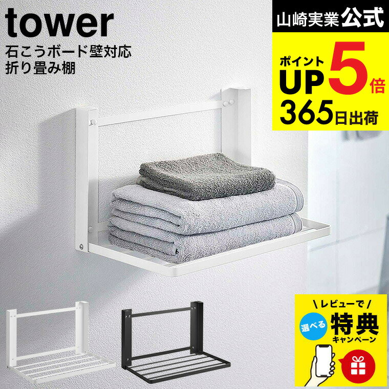 【レビュー特典】[ 石こうボード壁対応 折り畳み棚 タワー ] 山崎実業 tower ホワイト/ブラック 8142 8143 / タオルラック バスタオル タオル 着替え 一時置き 洗面所 収納 脱衣所 お風呂 バスルーム 折り畳み タワーシリーズ JGS 最強配送 dej cpj 送料無料