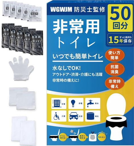 簡易トイレ【防災士監修】携帯トイレ非常用トイレ災害用防災トイレポータブルトイレ防災グッズ防災セット防臭袋大便アウトドア介護用/台風/洪水/災害時/断水時簡単使用15年保存(50回)