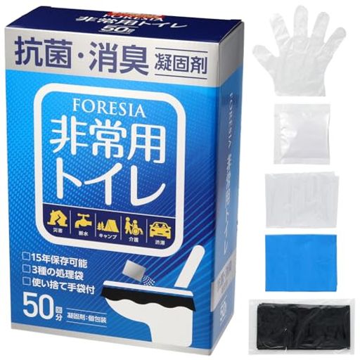FORESIA非常用トイレ50回分15年保存簡易トイレ凝固剤使い捨て手袋つき防災