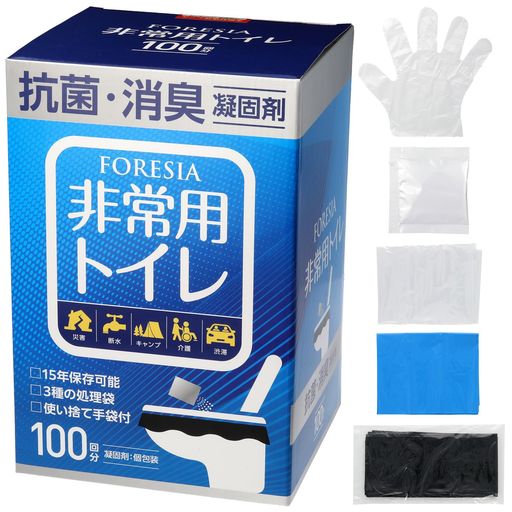 FORESIA非常用トイレ100回分15年保存簡易トイレ凝固剤使い捨て手袋つき防災