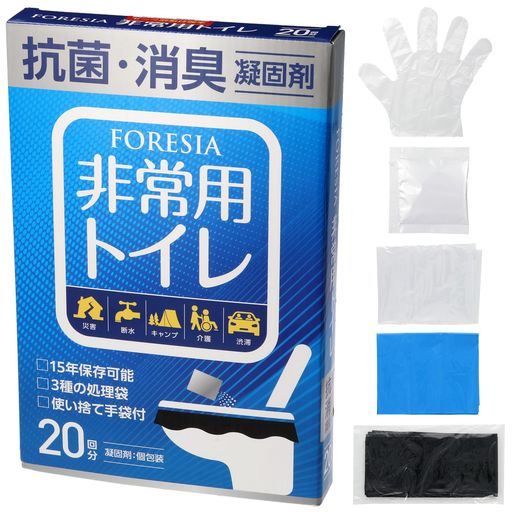 FORESIA非常用トイレ20回分15年保存簡易トイレ凝固剤使い捨て手袋つき防災