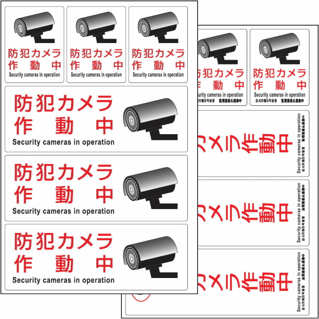 貼るだけ簡単の「防犯カメラ作動中」ステッカーです。 ダミーで貼るだけでも効果あり!? 不審者・防犯対策に、ぜひご活用ください。 ※ 韓国語・中国語表記「あり」「なし」をご選択頂けるようになりました。 ●サイズ:A4サイズシート (約210mm×297mm) 【ステッカーサイズ】(小)約75mm×58mm、(大)約65mm×180mm ●素材:屋外の看板でも使用されてる(中長期耐候品) ※色について、モニターの発色の具合によって実際のものと色が異なる場合があります、予め御了承お願いします。 【検索キー】マナー/ピクトサイン/注意喚起/シール/迷惑防止/空き巣/泥棒/防止/