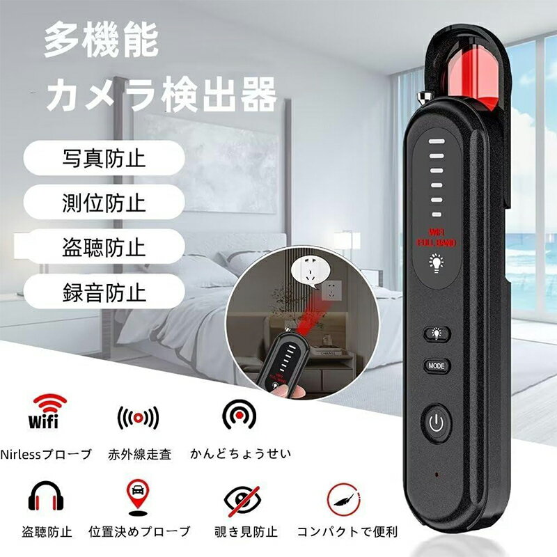 盗聴器、隠しカメラを発見する高性能機器電波キャッチ、赤外線でレンズ探索【不安を安心に、高性能発見器】・女性でも操作、持ち運びやすい。・電波をしっかりキャッチ。・音でお知らせ、強度も表示。・隠しカメラのレンズも探せる。【検知】・盗聴器、隠しカメラ、GPS機の電波を検知し、ピーピーと音でお知らせします。また、電波強度もインジゲータでお知らせ。RF電波とWi-Fi電波検知を切り替えることができます。・カメラレンズに反応する赤外線レーザーとフィルターで目視でカメラを探すことができます。電波を発していないカメラを探すときに活用できます。点滅パターンを変え、より分かりやすく発見しやすくできます。【誰もが危険にさらされる時代】最近は、誰でも簡単に高性能な隠しカメラ、盗聴器、GPS機が入手できます。ストーカーなどの場合だけでなく、泥棒などが事前に情報を入手するため、個人情報を盗むため、GPSを車などに簡単に設置、等々数えきれないパターンがあり、あなたも被害者に十分なりえます。まさか自分が...といったケースが増えていますし、ぜひ、今一度ご自分と家族を守るための行動を心がけで頂きたいです。【製品詳細】・RF周波数範囲:100MHz-2.7GHz・検知範囲:1.2G、2.4G-10平方メートル・充電:Type-C(充電ケーブル付き)※アダプターは付属しません。・重量:約30g・電池:3.7V、350mAリチウムポリマー・レンズ検出:赤外線レーザースキャン、検出範囲.01〜5M・材質:ABS※日本語取扱説明書、撮影用小物類などは付属しておりません。※簡易包装でのお届けとなります。※モニターにより色合いが若干違いが生じる場合がございます。※デザインは入荷時期により若干変化する場合がございます※海外製造品のため、多少の匂い軽微な傷や汚れ、個体差等ある場合がございます。※商品の使用により生じた如何なる損害・被害も弊社では一切の責任を負いかねますので予めご了承ください。※発送方法について:お届け先、個数によって配送情報に記載の配送業者とは異なる場合がございます。日本郵便、佐川急便、またはセイノーエクスプレス(大型商品)でお届けいたします。なお、配送業者はお選びいただけませんので、ご了承ください。