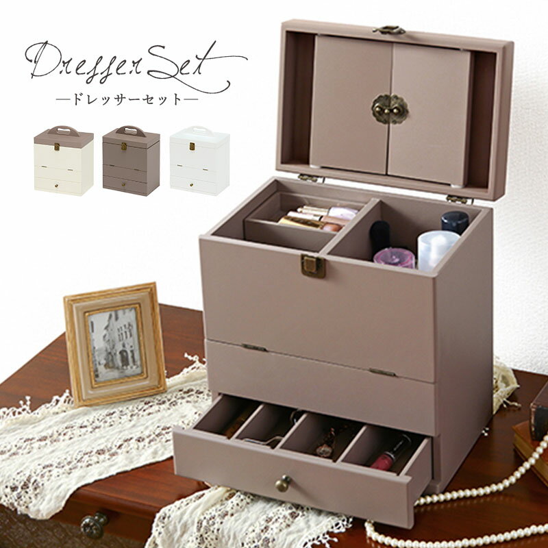 【50%OFFクーポンあり★4日20時〜先着2名】大容量 選べる3色 コスメボックス[完成品](木製 メイクボックス おしゃれ 三面鏡 ミニドレッサー 可愛い コンパクト 白 ホワイト ピンク ブラウンコスメ ボックス メイク バニティ かわいい 化粧品入れ メイクBOX コスメBOX)
