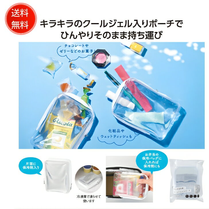 商品情報【サイズ】約145×100×30mm【素材・成分】PVC・保冷剤・亜鉛合金【生産国】中国【使用方法】【1】表面の汚れ・水滴を取り除いてください。【2】冷凍庫で2時間以上凍られせてください。※平らな場所に平らな状態で冷やしてください。中材の偏りや破損の原因になります。【送料無料】メール便可 キラキラのジェル入ポーチ(そのまま冷凍) 保冷バッグ 小さめ 冷感ポーチ クールジェル ミニサイズ ゼリー 小物入れ 化粧ポーチ 保冷ジェル 冷感 保冷 冷蔵 冷却 携帯用ポーチ お弁当 お菓子 夏フェス キラキラのクールジェル入りポーチでひんやりそのまま持ち運び 涼しげな見た目が魅力のクールジェル入りポーチ。ポーチごと冷凍でき、濡れたものも入れやすく、お菓子やタオル等を冷たい状態で持ち歩けます。溶けやすい食べ物や冷たい状態で使用したいものの持ち歩きに!●冷凍しても片面にジェルが固まらない●チョコレートやゼリー、グミなど熱に弱いお菓子●化粧品●ウェットティッシュやボディシート→ポーチをお弁当の保冷バッグに入れれば保冷剤として使えます! 2