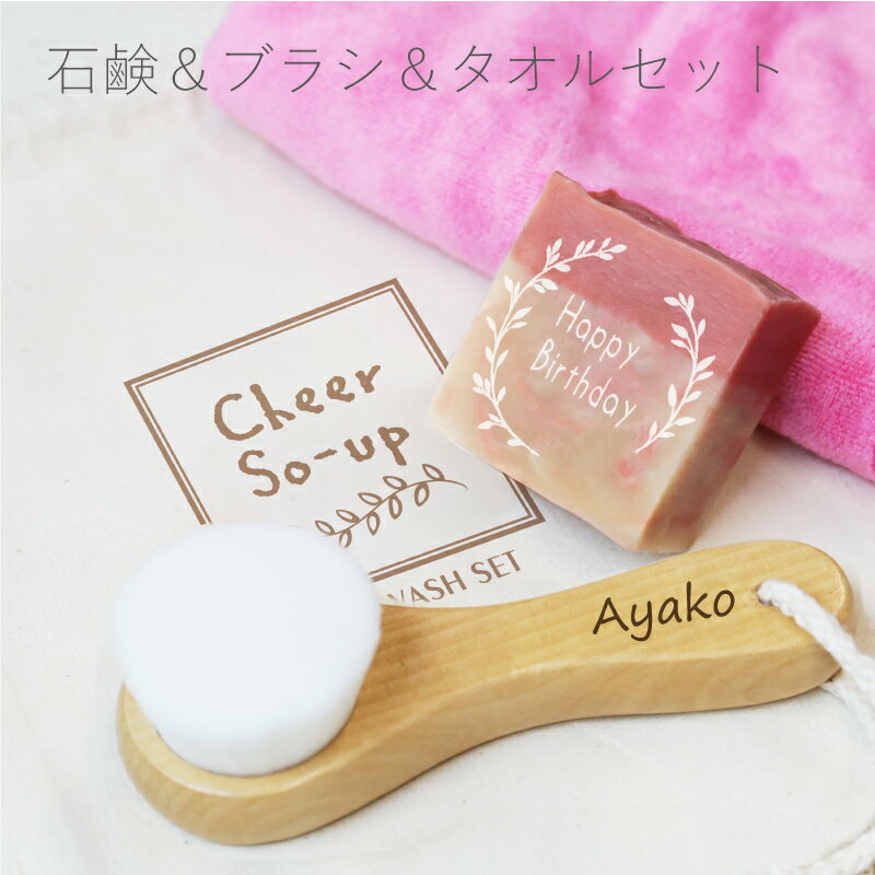 洗顔ブラシ 名入れ おしゃれ プレゼント 【 Cheer So-Up!フェイスウォッシュセット】 スキンケア 美肌 石鹸 せっけん フェイスブラシ マイクロファイバー タオル 名前入り ギフト 人気 贈り物 誕生日 女性 お母さん お祝い 送料無料 翌々営業日出荷