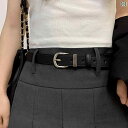 レディース ベルト サマー ブラック ジーンズ アメリカン レトロ シルバー バックル 装飾 シンプル