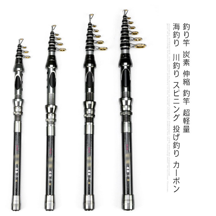 釣り竿 炭素 伸縮 釣竿 超軽量 海釣り 川釣り スピニング 投げ釣り カーボン 超軽量 携帯型 コンパクト フィッシング 1.5m 1.8m 2.1m 2.7m