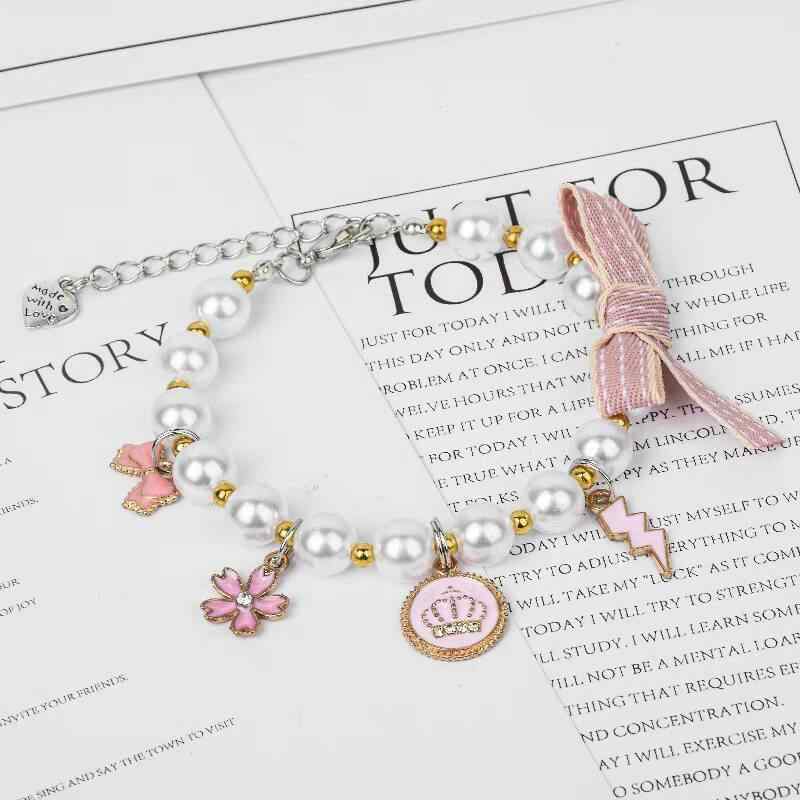 ペット用ネックレス 猫 犬 首輪 チョーカー レトロ かわいい パール 無音 調節可能 ペンダント 小型犬 中型犬 通年(x2)