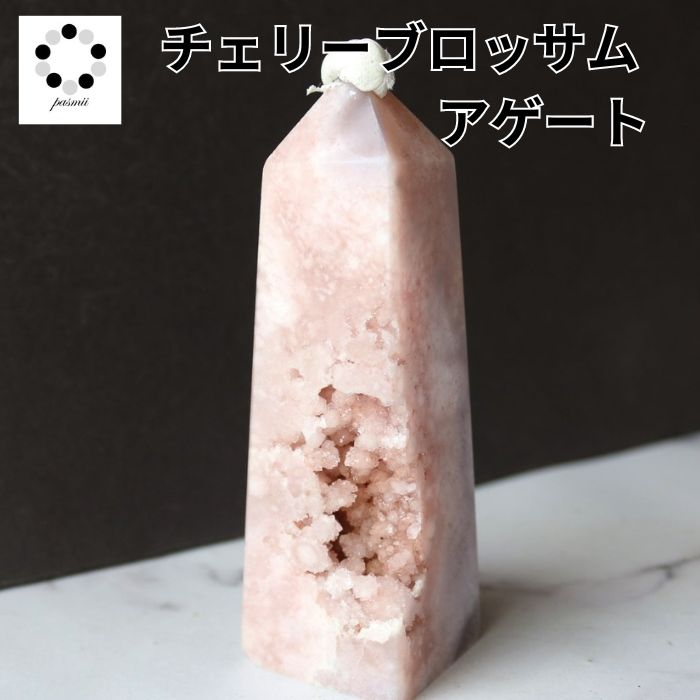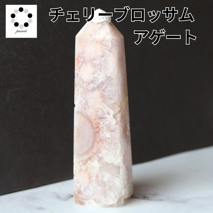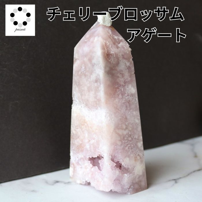 桜アゲート ポイント ドゥールジー タワー 現物 1点物 本物 天然石 パワーストーン チェリーブロッサムアゲート アゲート桜瑪瑙 インテリア レディース メンズ プレゼント 癒し pasmii