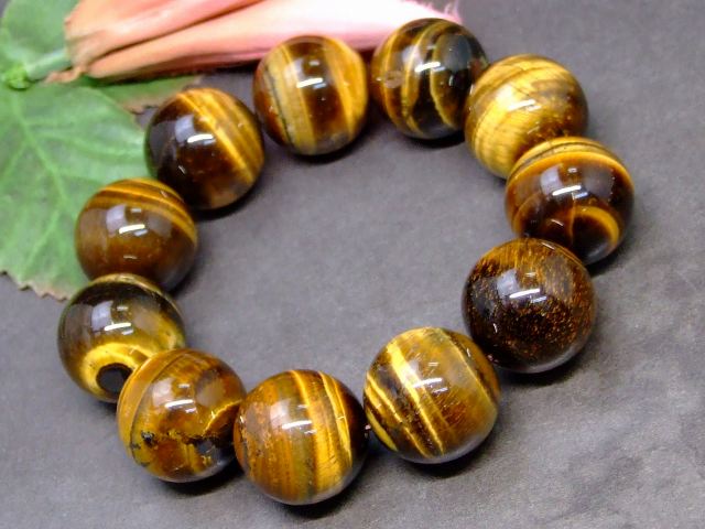 ≪b3-32387≫●20mm●タイガーアイ 黄虎目石●ブレスレット●内径17cm●鑑別済・本物保証●送料無料●南アフリカ共和国産●天然石●パワーストーン