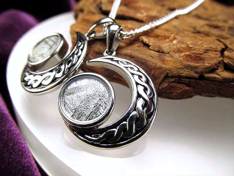 ●【激安宣言】【三日月ギベオンサークルペンダントトップ】 SILVER925 シルバーカラー 縦約20mm 1個売り メテオライト(隕石)【ナミビア・ハルダブ州産】【geki-met2F29】 パワーストーン 天然石