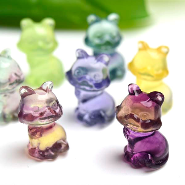 フローライト 猫 ネコ 彫刻 置物 ミニチュアサイズ ■洋猫■ 種類お任せ【販売単位:1個】|フローライト|風水置物|開運|蛍石|猫|キャット|cat|天然石|パワーストーン|お守り■39ショップ■