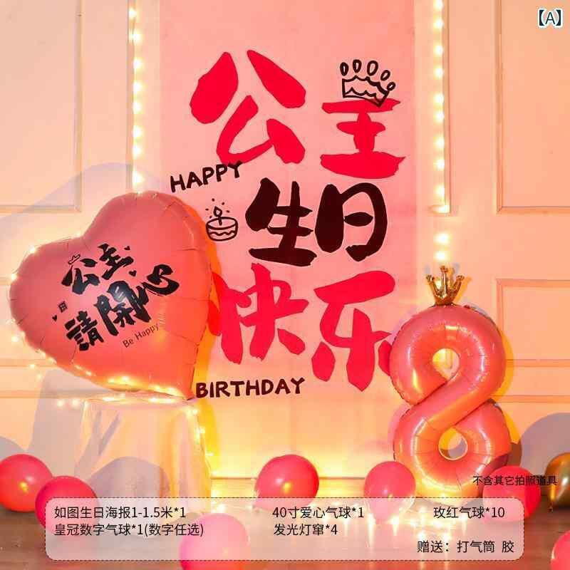 パーティーグッズ ホームパーティー 誕生日 女の子 子供の 誕生日 シーン レイアウト 装飾 18歳の 成人 式 ポスター 吊り布 風船 雰囲気 儀式 小道具