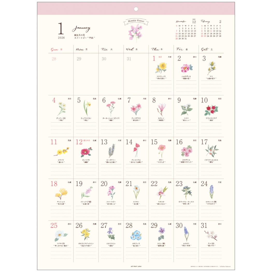 365日花ことば 2026Calendar 壁掛けカレンダー2026年 スケジュール フラワー APJ 花 書き込み インテリア 令和8年暦 シネマコレクション
