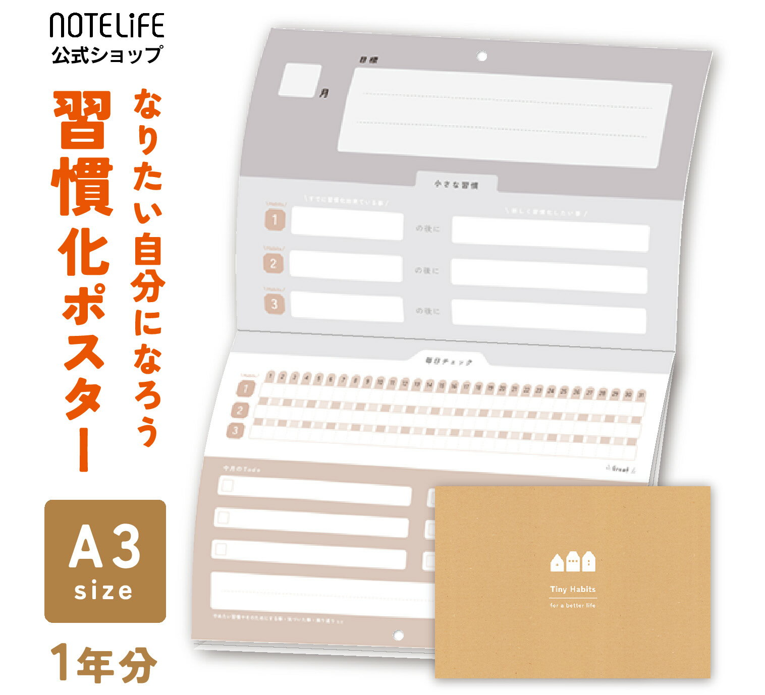 ノートライフ 習慣カレンダー A3(42×30cm) 壁掛け いつからでも始められる 目標達成 習慣化 受験対策 ハビットトラッカー【 habit スタディプランナー タスク管理 ToDo 子供 こども やることリスト 勉強 ポスター PDCA 】