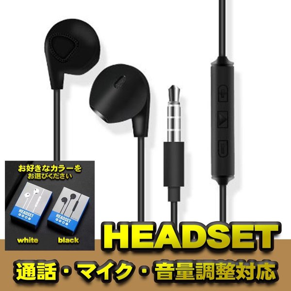 ヘッドセットマイク 音量調整対応 マイク付き イヤホン 高品質 iPhone 6 5 4 対応 115cm 3.5mm ジャック 全国送料無料 【ブラック】