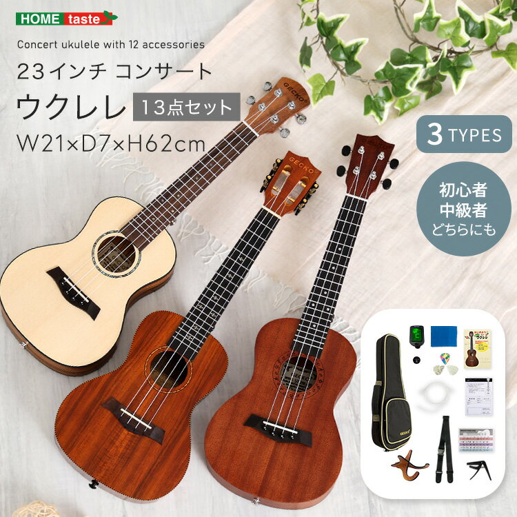 【[楽天スーパーSALE 限定/100円OFFクーポン】ウクレレ 初心者 セット ケース付き 23インチ コンサート コンパクト 趣味 プレゼント 母の日 父の日 敬老の日 入門 楽器
