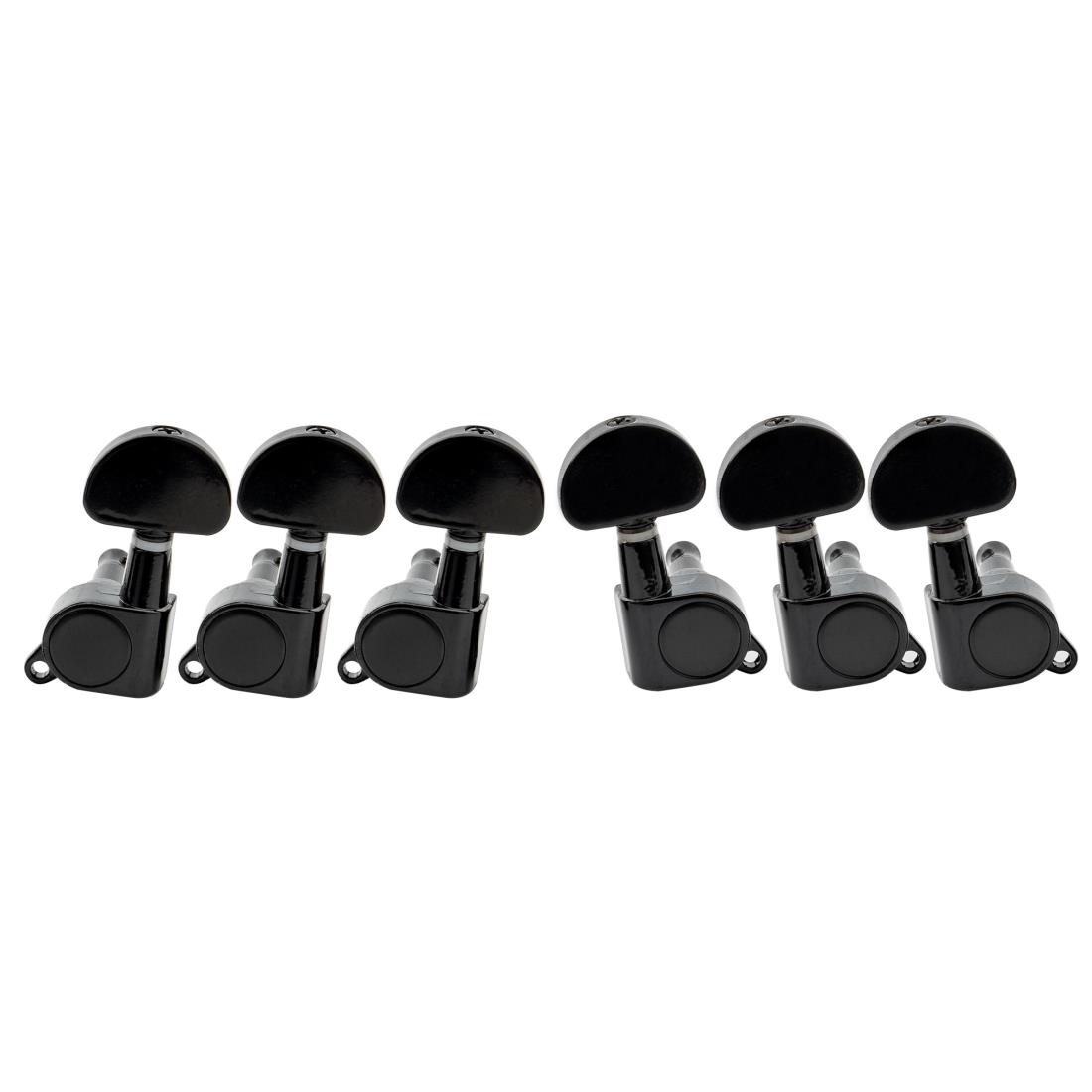 Musiclily Basic L3+R3 ギターペグLP SGエレキギター/アコースティックギター用、ブラック/ハーフムーンボタン