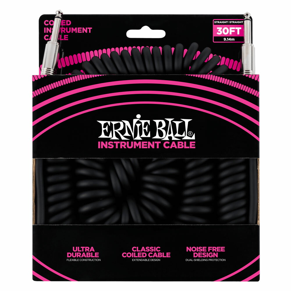 アーニーボール ERNIE BALL 6044 30' Coiled Straight/Straight Instrument Cable BLACK ギターケーブル
