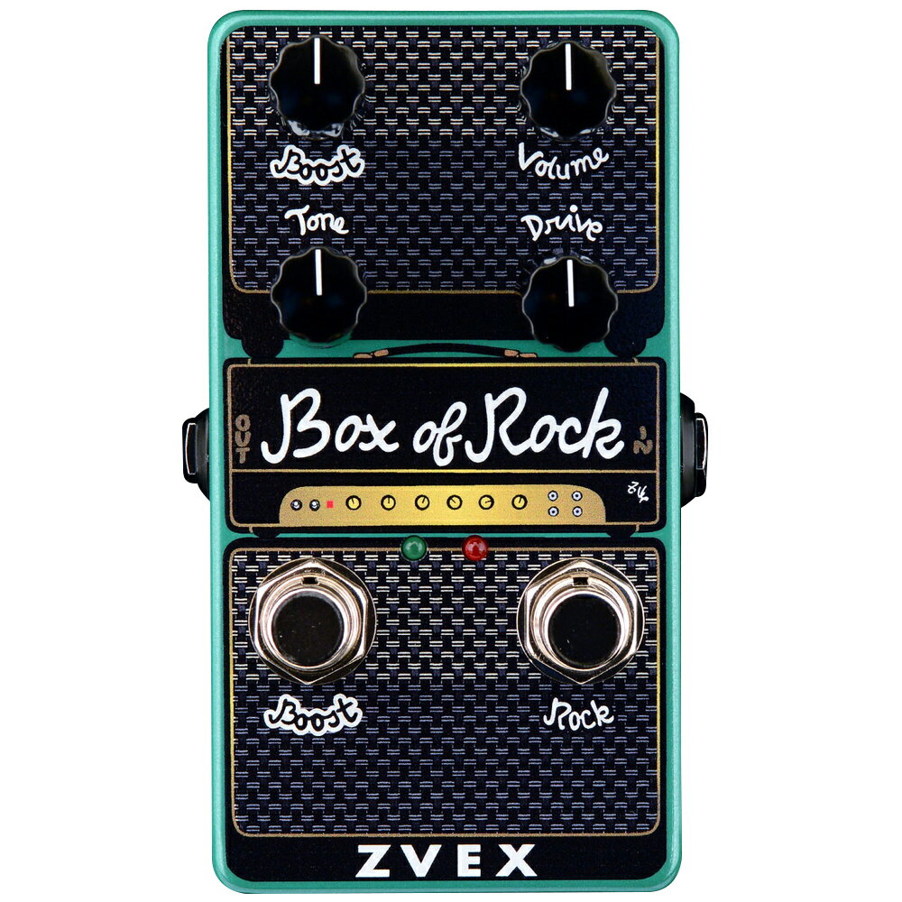 Z.VEX Box of Rock Vertical オーバードライブ ギターエフェクターZ.VEX社ベストセラーディストーションペダルBox Of RockのVertical Seriesが登場しました。BORは、クラッシックのJ45(全てのコントロールノブが10の設定)のサウンドを再現しています。マーシャルとの相性が特に素晴らしいですが、多くの他のアンプとも効果的に使用することが出来ます。ドライブノブをどこに設定しても、ギターのボリューム・コントロールでディストーションの量を調節でき、非常にクリアでクリーンなサウンドが得られます。BORには非常大きなヘッドルームがあり、ユニティーから50倍までのゲイン・ブースターではインプット・インピーダンスもヒス音もわずかです。SHO(Z.VEX Super Hard On)のブースト・サーキットに類似していますが、よりスタンダードなアンプのインプットに近く、ガラス質な耳障りな音も少なくなるよう改良されています。"BOOST"チャンネルは単独でも、"DISTORTRON ENGINE"チャンネルとの併用でも使用することが可能です。DiSTORTRONチャンネルの後段にBOOSTチャンネルがあるので、両方をONにするとより強く(大きな音量で)アンプにディストーションを送れることからソロなどをブーストする際に効果的です。CONTROLSBOOST:ブーストレベルを設定します。ブーストは、左側のフットスイッチと連動します。*ドライブとブーストのコントロールは、オリジナルのSuper Hard Onゲインコントロールをベースにしているので、ノブを回したときにノイズが発生することがありますが異常ではありません。VOLUME:ディストーションエンジンのボリュームレベルを調整します。TONE:高音域の成分を調整します。DRIVE:歪みの量を設定します。