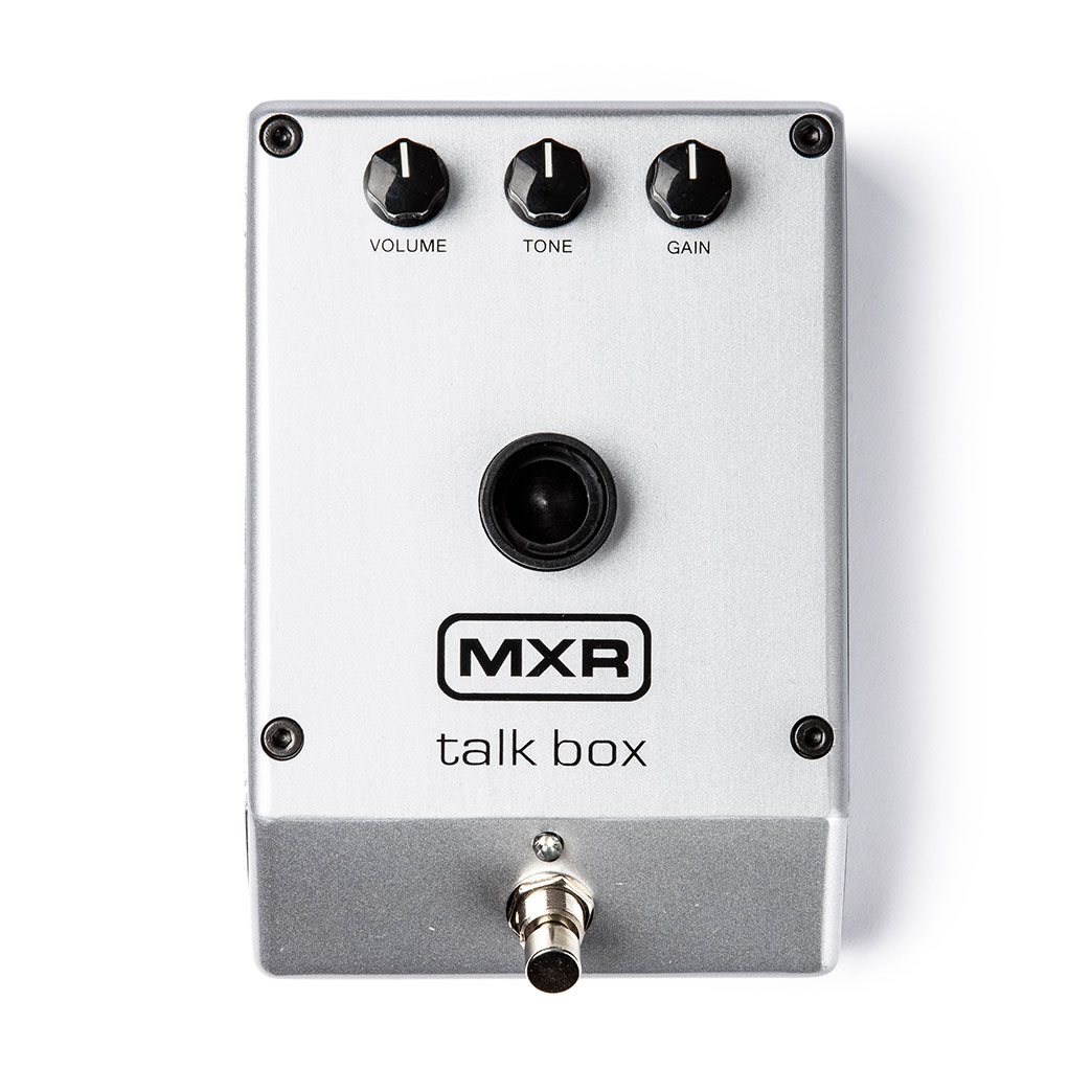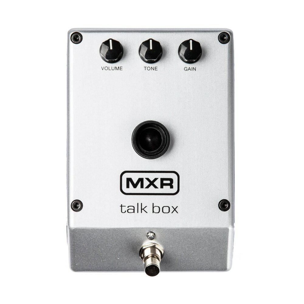 MXR M222 Talk Box トークボックス エフェクターあのトークボックスが、アンプとスピーカードライバーを内蔵してMXRからリリースされます。口でモジュレートしたサウンドは今までどおりマイク取りをしてPAから出力しますが、別にドライブ用のアンプの必要がなく、ドライブするサウンドはVolume、Tone、Gainでコントロールができ、ギター出力はドライブとバイパスを切り替えられます。ボイス・チューブ(ホース)、ボイス・チューブをマイクスタンドに固定する専用ホルダー、18v ACアダプター(MXR ECB-009M)付属。ボイス・チューブを外せば簡易ギターアンプとしても活用出来ます。外形寸法:107 mm(W) x 159 mm(D) x 62 mm(H)/ボイス・チューブ含まず本体重量:1150 g/ボイス・チューブ含まず