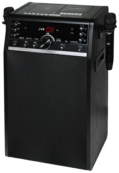 【中古】【非常に良い】太知ホールディングス DVDカラオケシステム 無段階エコー調節 カセットデッキ搭載 ワイヤレス マイク2本付属 家庭用カラオケセット ブラック DVD