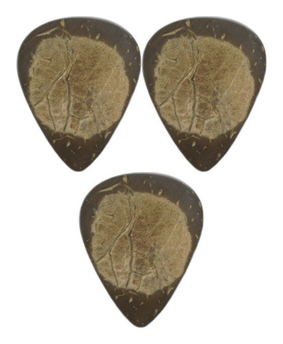 Clayton USA Coconut EXOTICS ギターピック×3枚。ナチュラルな素材を採用したピックです。ココナッツの殻を使用したピックで丈夫です。ブライトなトーンで、片面を滑らか、反面をグリップしやすく粗く仕上げてあります。※天然素材のため個体によって柄、杢目が異なります。※3枚セットでの販売です。