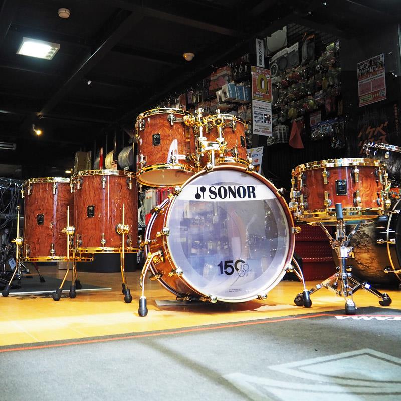 楽器種別:ユーズドSONOR/ユーズド 商品一覧>>ドラム【1,255,000円〜2,345,000円】 商品一覧>>ドラムセット/SONOR 商品一覧>>安心してお買い物頂けるよう、スネアもシンバルも丁寧梱包でお届けします!SONOR USED 中古 150th Anniversary Signature Heritage Shell Set [No. 23 of 25]商品説明【ドイツの誇る世界最古の打楽器メーカーの一つ、SONOR社の創立150周年を記念したプレミアム・ドラムセットの中古品が入荷いたしました。未使用状態の極めて良好なコンディションです。】【シェルセット内容】バスドラム:22''x18''(マウント付き)タムタム:10''x10''タムタム:12''x12''フロアタム:14''x16''フロアタム:16x18''スネアドラム:14''x8''ダブルタムホルダー:DTH675MCG【基本仕様】シェル:10.5mm/15Plyシグネチャー・ビーチウッドフィニッシュ:厳選されたブビンガ・ハイグロスラグ:TuneSafe内蔵ソナー・シングルラグテンションボルト:スロテッド・ボルトストレイナー:デュアルグライドシステム※スネアドラムにはSONORダイキャスト・フープ搭載。※ハードウェアはすべて24金メッキ仕様となります。バッジ:個別のシリアル番号付きバッジ付属品:個別認定証を含むウェルカムパッケージ※画像のスネアスタンドは付属致しません。売主様が直接海外の楽器店からお求めになられ、その後当店にお持ち込みされました。そのため国内の正規輸入元を通っておりませんが、万一の不具合や修理といった場合には、通常の対応が可能でございますので、あらかじめご参考くださいませ。-SONOR Signature-SONORが目指したのは、伝統と革新の融合。SONOR Signature Seriesのオリジナルモデルは、1980年のフランクフルト・ムジークメッセで発表されました。当時、SONOR は最高峰の音響性能と技術を兼ね備えたハイエンド・ドラムセットの開発を目指し、大規模な科学研究を実施。その成果として誕生したのが、このシリーズです。極めて厚く重量感のある 10.5mm厚のブナ材(ビーチウッド) シェルは、ドラムヘッドの振動を最大限に引き出すよう設計されており、純粋なトーンと圧倒的な共鳴(レゾナンス)、そして力強い音の投射(プロジェクション)を実現しました。Signature Seriesは、単にハイエンド・ドラムの基準を引き上げただけではなく、それ以降の「ハイエンド・ドラムの在り方」を決定づけた革新的なシリーズだったのです。-150周年記念 Signature Seriesシェルセット-今回登場する 150周年記念 Signature Seriesシェルセットは、1980年代のオリジナルモデルを単に復刻したものではありません。伝統と革新を融合させ、オリジナルの Signature Series シェルを忠実に再現しながらも、最新のシェル・ハードウェアを組み合わせたトリビュート・モデルです。この伝説的なSignature Seriesのシェルを再現するため、選び抜かれたドイツ産ブナ材を使用し、13プライを交互に積層しています。さらに、シェルの内側と外側には希少な ブビンガ材(Bubinga)を採用し、合計15プライとなるようにシェルを成形しました。特に、今回のモデルにはBubinga Pommele(学名: Guibourtia demeusii)を使用しており、美しい木目や色合い、深みのある模様が、視覚的な魅力をさらに引き立てています。また、ブビンガ材の 天然の美しさ を最大限に生かすため、シェルには 透明なハイグロスラッカー仕上げを施しました。この仕上げは、複数回の塗装と研磨をすべて職人の手作業で行うことで完成します。さらに、ドラムの全ハードウェアには24カラットのゴールドメッキを採用。深みのあるブビンガ材のブラウンカラーとのコントラストが、極上の ラグジュアリーな雰囲気 を演出します。仕上げとして、各ドラムにはシリアルナンバー入りの記念バッジを取り付け、一つひとつが 唯一無二のコレクターズアイテムであることを証明しています。-世界限定25台-150周年記念 Signature Seriesシェルセットは、世界限定75台のみの生産。そのうち25台は、オリジナルの Signature Seriesと同じシェルの深さを持つ「Heritage」仕様。残る50台は、現代の音楽シーンに適した、より浅めのシェルを採用しています。長い歴史を誇る SONOR の最高峰シリーズが、進化した形で再び登場。伝統を継承しつつ、新たな時代のスタンダードを築くこの特別なドラムセットを手にすることができるのは、世界でわずか25人だけです。[シグネチャーシェル構造]シグネチャーシェル構造すべてのドラムは15プライ(10.5mm)のシグネチャーシリーズレプリカシェルを使用しています。[オリジナル・テンションロッド]タム、フロアタム、スネアドラムにオリジナルのスロテッド・ボルトを採用。[シリアル番号付バッジ]すべてのドラムにシリアル番号のバッジとそれに対応する証明書が付いています。[スネアドラムの特徴]スネアドラムはデュアルグライドシステムとドイツ製ダイキャストフープを採用しています。[最先端のタムマウント]サスティンを微調整するためのAcoustiGateを備えた最先端のTARマウントシステムが搭載されています。[ピンストライプヘッド]Heritage Shell Setには、オリジナルと同様にRemo Pinstr