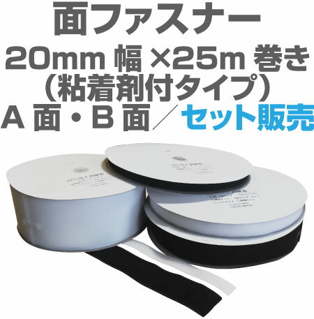 面ファスナー20mm幅×25m巻き粘着剤付きタイプのA面・B面セット販売マジックテープ類、ベルクロ類アパレル、家庭用品工業用品,現場、学校になど幅広く活用。