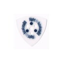 オリジナルピック形状&デュアルグリップ ピック自体に穴を空け指先を固定、サンドグリップ印刷で指に吸い付く範囲をコントロール、2種類の違った滑止め効果を複合させた新しいタイプのピックです。ピックの握り方、持つ位置、反らせる力の入れ具合、弦に当てる角度や深さ、早さなど…人それぞれ全く違います。一般的なオニギリ型・デルタ型では解消できなかったグリップニュアンスを100%引き出すためデザインされました。 【オリジナル・デルタタイプ】 スケールやテンションの違いでの演奏スタイル、ピックの反り、しなりや擦れ具合を考え、さらに丸みを持たせたオリジナル・デルタタイプ。摩耗に強いポリアセタール材を使用。 ■シェイプ:デルタタイプ■厚さ:1.2mm■材:ポリアセタール。