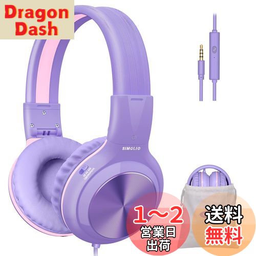 【送料無料】SIMOLIO 子供用ヘッドホン マイク付き 有線 聴覚保護 子供 成人 兼用 折りたたみ式 キッズ ヘッドフォン 授業/学校/旅行/映画/ゲーム/音楽など適用 パープル 904V