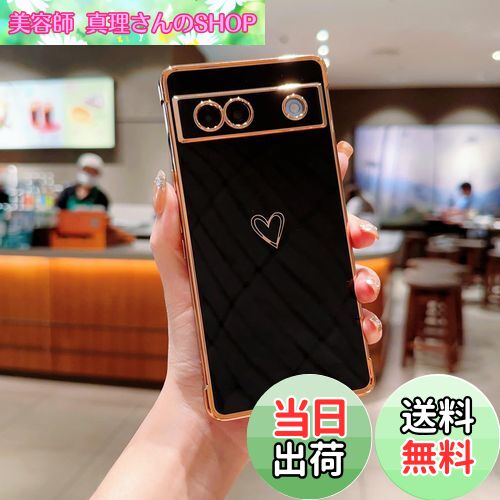 【送料無料】QLTYPRI Google Pixel 9 Pro XL ケース ハート Pixel9 Pro XL ケース ピクセル9 プロ XL カバー おしゃれ 韓国 可愛い メッキ加工 ソフト TPU 薄型 軽量 耐衝撃 スマホケース ワイヤレス充電対応 ストラップホール付き - ブラック #2