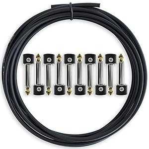 Crosby Solderless Pedalboard Cable Kit - No Cable Stripping Required, 10 Feet of Cable & 10 Gold Tip Connectors with Magnetic Screws & Screwdriver Make 5 DIY Custom Patch Cables