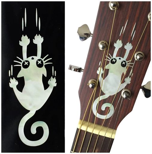 Ripping Slipping Cat - イタズラ 猫 ・ギター や ベース 楽器に貼る インレイステッカー (WT) B-300RC-WT