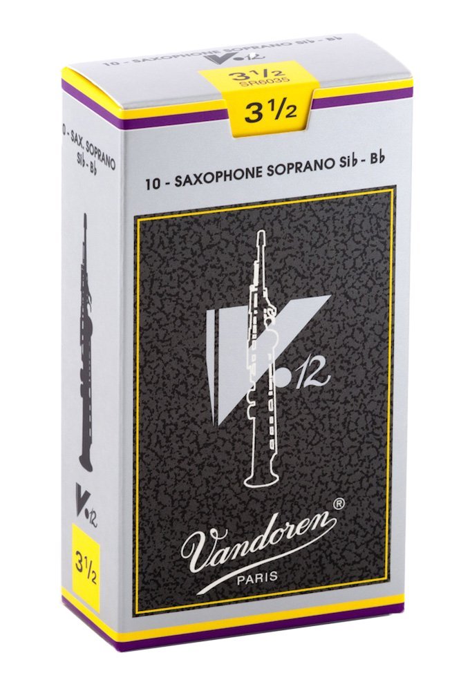 【バンドレンリード】ソプラノサックス(S・Sax) V12 3.5(3 1/2) クラリネットでも非常に高い支持を得ているV12、 その特徴と利点を生かしたリードが サックス向けにも登場しました。 ●一箱10枚入り ●リードの強度(コシの強さ)3 1/2長年にわたって高い評価を得ている一番幅広く使われているリードです。 非常に薄いティップからきわめてピュアな音質が生み出されるようにデザインされており、 また振動する部分のコシが強くJAVAやV16よりも*パレットが厚くなっています。