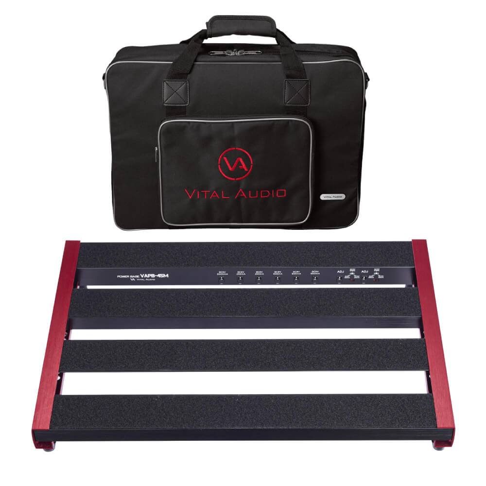 トピックスショッピングクレジット分割48回払いまで金利手数料0%!期間限定 〜2025年11月30日まで30,000円(税込)以上のお買い物が対象となります。本キャンペーンはクレジットカードでのお支払いは対象外となります。詳しくはお問い合わせください。アイテム説明Vital Audioでは、ペダルボードのデザインをより自由にするため、パワーサプライをボードに内蔵するという新たなアプローチを試みました。ギタリストがペダルボードをデザインするにあたり、ボードにはペダルを1つでも多く入れたいと思いつつもパワーサプライのスペースをどの様に確保するかに頭を悩ませている、という多くのフィードバックからペダルボードとパワーサプライを一体化したVAPB-45Mが生まれました。VAPB-45M では流行りのスノコ型のペダルボードを採用。そのリア部分のバーの中にパワーサプライを内蔵させました。パワーサプライがペダルボードと一体化したことにより、パワーサプライを配置するスペースに頭を悩ませることなく、自在にエフェクトペダルをレイアウトできます。ベストセラーモデル VA-08 MkIIに代表されるフルアイソレートされたDCパワーサプライ部を搭載。デジタル/アナログエフェクターが混在した状況でも、DCラインからのノイズの混入が抑えられます。また特定のDC出力でトラブルが発生した場合でも、他の出力に影響を与えません。9V固定出力は、最大250mAが2ポート、最大500mAが3ポート、さらにビンテージタイプやマルチエフェクター、さらにはプリアンプにも対応する、9V/12V/18V 可変出力を2ポート装備しました。その他大容量の9V/3000mA出力(ノンアイソレート)やLEDランプやUSB給電の周辺機器の接続に便利なUSB出力も2ポート搭載しています(USB-CはPD仕様)。初めてペダルボードを組む方にも、あるいはパワーサプライのスペース確保に困っていたベテランギタリストにもお勧めのモデルです。主な特長・パワーサプライ内蔵ペダルボード・5〜8台ほどのエフェクトペダルを配置できるミディアムサイズの汎用性の高いサイズ感・合計で8つのDCアウトレット・そのうち、7つはアイソレートされたDCアウトレット、うち2つは電圧可変・1つの大容量9V/3000mA のDCアウトレット(ノンアイソレート、最大容量は合計使用電流に依存)・充電や周辺機器への電源供給に便利なUSB-A/USB-Cアウトレット(USB-CポートはPD仕様)・専用DC 24V/2A アダプター付属・各種DCケーブル付属(変換ケーブル、昇圧ケーブル、分配ケーブルも含みます)・キャリングケース付属主な仕様・DC-DCスイッチング電源・インプット:DC 24V/2A(=48W、専用ACアダプターを使用のこと)・アウトプット(センターマイナス、最大31.5W) アイソレートアウト:9V/250mA×2、9V/500mA×3、可変(9V/500mA・12V/375mA・18V/250mA)×2ノンアイソレートアウト:9V/3000mA×1、USB-A(5V/2.5A)×1、USB-C(最大18W PD仕様、5V/3A・9V/2A・18V/1A)×1・外形寸法:450 (W)×305 (D)×70〜85 (H) mm ※突起含まない本体サイズ・本体重量:約1510 g付属品:ACアダプター×1ACケーブル×1DCケーブル:30 cm×3、60 cm×3、90 cm×3バッテリースナップケーブル×1 *0006P乾電池端子に変換5525ケーブル×1 *特殊な外径5.5 mm/内径2.5mmプラグに変換3.5ケーブル×1 *特殊な3.5 mm TSプラグに変換昇圧Y字ケーブル×1 *2つのアイソレート出力を使って昇圧分配Y字ケーブル×1 *1つの出力を2つに分配ケーブルロッククリップ×1六角レンチ×2ギグバック×1面ファスナー:200 cm×4.5 cm×1【注意】使用する機材によってDCアウトレットから供給される電力の総計が約31.5W以上になると保護回路が働き、正常に駆動しない場合があります。納期について売却時は迅速に商品情報の削除を心掛けておりますが、ショッピングページの更新までにタイムラグが生じ、ご注文のタイミングによっては商品のご用意ができない場合がございます。あらかじめご了承くださいますようお願い申し上げます。最強配送対象商品以外、納期のご確認はご注文前に「商品についての問合わせ」よりお問い合わせください。
