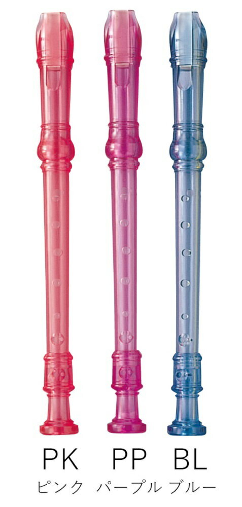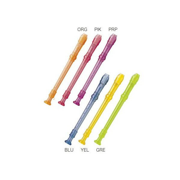 カラフルなスケルトンリコーダー♪ ORG(オレンジ)、PIK(ピンク)、PRP(パープル)、BLU(ブルー)、YEL(イエロー)、GRE(グリーン)の6色からお選びください クリーニングロッド、運指表付 ジャーマン式